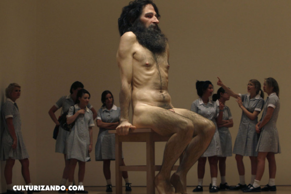 Esta extraordinaria escultura hiperrealista de Ron Mueck mide 5 metros de alto, pesa 500 kg y está elaborada a base de fibra de vidrio y silicón.