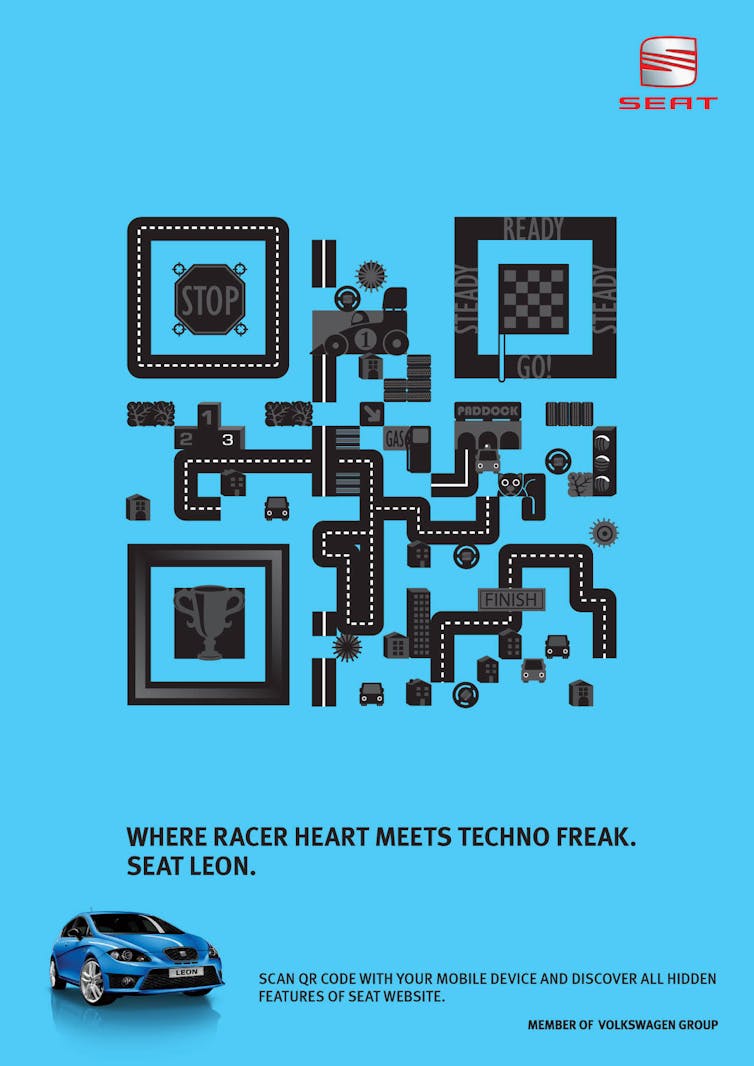 Algunos ejemplos notables son la campaña del SEAT Ibiza de 2011, donde se diseñó un QR formado por señales de tráfico, tramos de carretera y otros elementos, o la portada de la revista AdNews de 2020, basada en un código compuesto por elementos gráficos para representar de forma icónica el año de la pandemia.