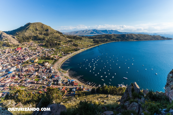 Ahora bien, esta playa está rodeada de montañas y volcanes, con pequeñas islas a corta distancia; las más visitadas es isla del Sol e isla de la Luna, la primera es conocida por la leyenda que asegura ser el origen de los Incas y en donde se encuentra un pequeño santuario dedicado al dios Sol.
