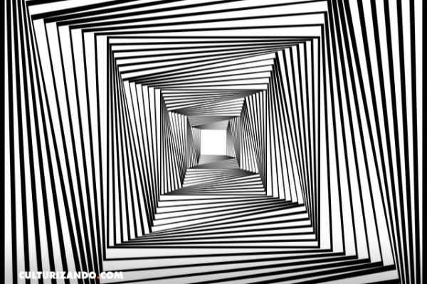 A través del empleo de líneas paralelas, contrastes cromáticos y múltiples patrones geométricos sobre una superficie bidimensional, se crea la ilusión óptica de movimiento.