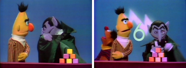 En las canciones del Conde son recurrentes las escenas con el órgano, que aprovecha para contar notas musicales del derecho y del revés. No es lo mismo contar objetos concretos, como las miguitas, que eventos. Las miguitas permiten ser separadas y facilitan la correspondencia uno a uno, mientras que las notas musicales, no. https://www.youtube.com/embed/eRsW-rV_EvA?wmode=transparent&start=0 El Conde Draco contando notas musicales. Fuente: Somalin X / YouTube.