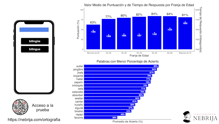 A través de una reciente plataforma desarrollada por el Centro de Investigación Nebrija en Cognición (CINC) de la Universidad Nebrija, se ha podido arrojar luz sobre cuáles son los principales retos ortográficos para los hablantes nativos y no nativos de español. Accesible a través de https://nebrija.com/ortografia, es un recurso interactivo compuesto por 80 pares de palabras de ortografía arbitraria. Los participantes deben elegir cuál de las dos opciones de cada par es la ortográficamente correcta.