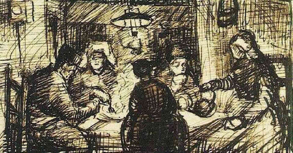 El boceto de su pintura favorita: «Los comedores de patatas» (1885)