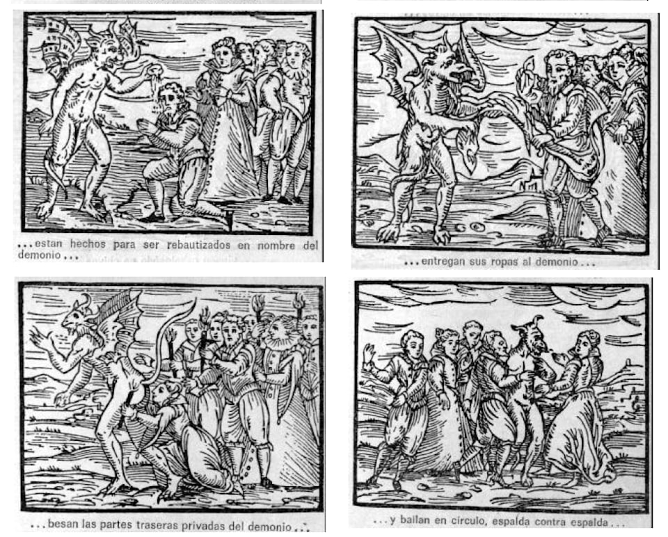 Parte de las ilustraciones, muestran las supuestas prácticas que hacían las brujas con el demonio -que para el momento era representado como un semi humano-.