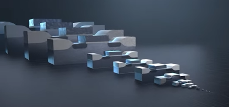 Cada nueva generación tecnológica (o nodo, en argot microelectrónico) viene definida por el valor de esa dimensión mínima. Y aproximadamente cada dos años se reduce para que el número de elementos que se pueden integrar en un chip, y por tanto la complejidad de lo que puede hacer, se duplique: es lo que se conoce como Ley de Moore, que parece estar llegando a su límite.