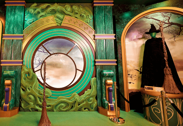 Para quienes amamos el cine y los musicales, este lugar es un museo vivo. No se trata solo de observar; la interacción es parte de la experiencia. Te verás rodeado de vestidos con pedrería, la varita, el sombrero y escoba icónicos de Elphaba, e incluso parte de la escenografía original. Es un verdadero paraíso para fanáticos de la saga Wicked.